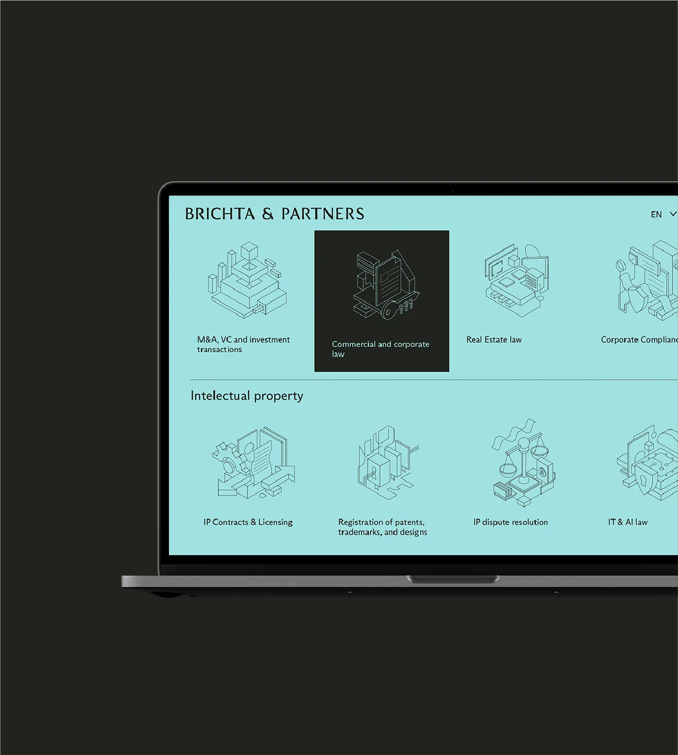 Brichta & Partners operate in a discipline defined by complexity. Legal frameworks, intellectual property, corporate structures -systems where clarity is essential. The new identity reflects this mindset. Built on structure, precision, and a confident visual language, the brand transforms legal expertise into something visible, contemporary, and unmistakably clear.